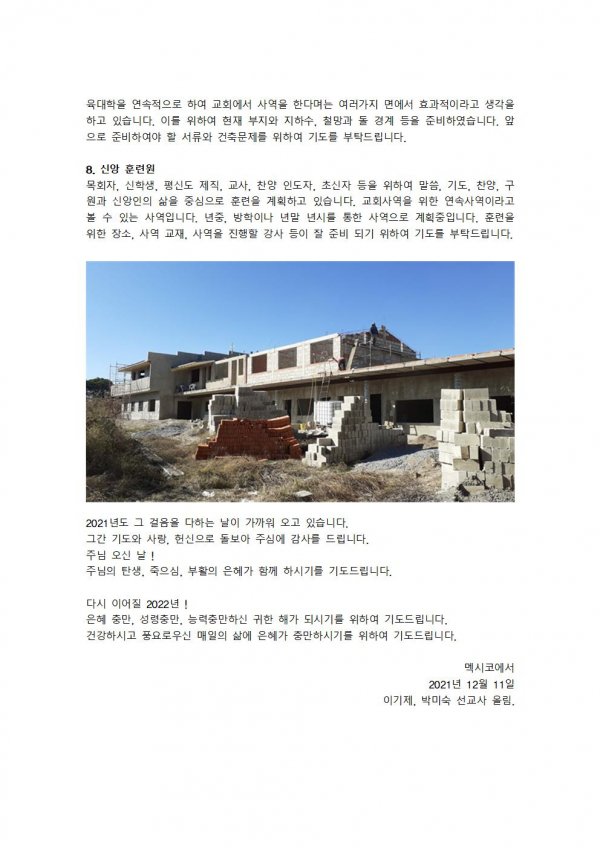 멕시코 이기제, 박미숙 선교사님 선교편지(12월)