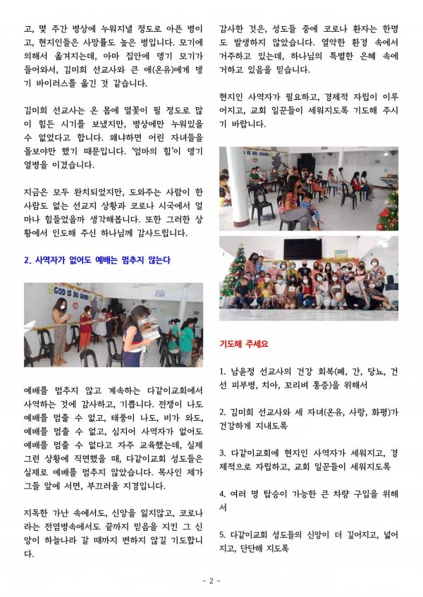 필리핀 남윤정, 김미희 선교사님 선교펀지(12월)