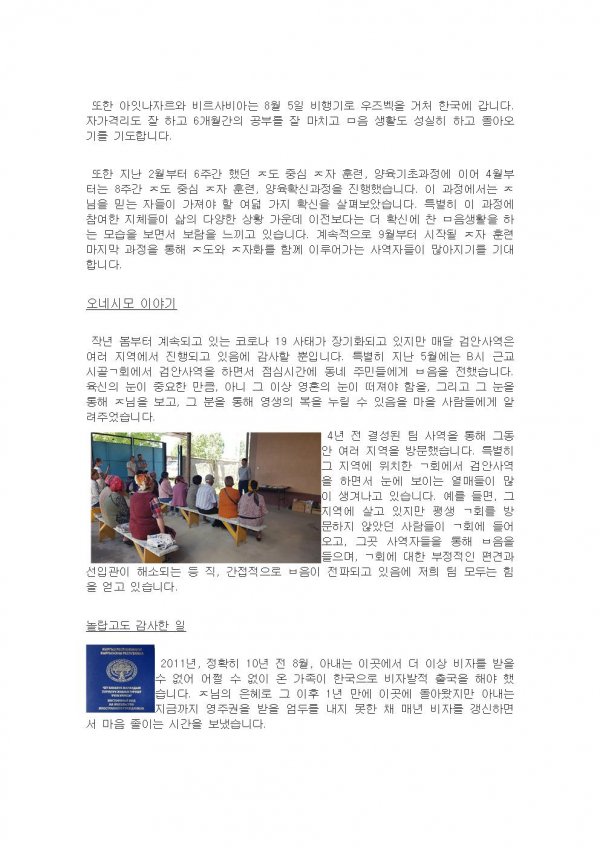 k국 전우현 선교사 선교 편지(7월)