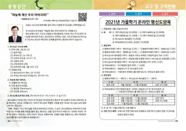 2021년 9월 5일(주) 교회/교우 소식