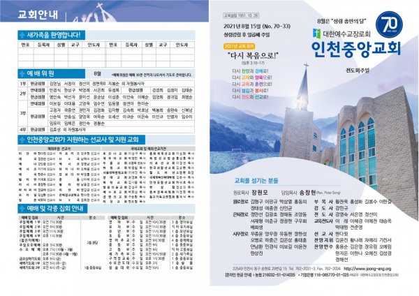 2021년 8월 15일(주) 교회/교우 소식