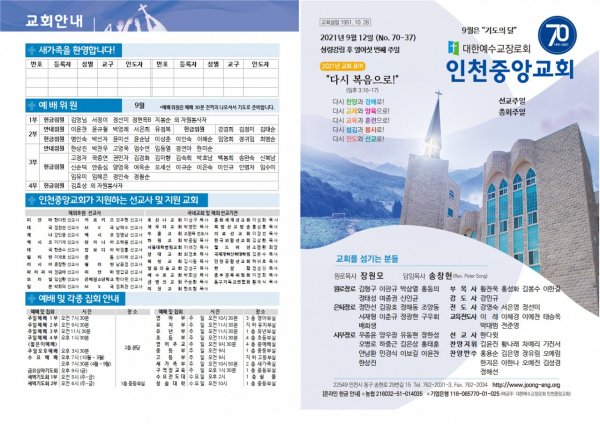 2021년 9월 12일(주) 교회/교우 소식