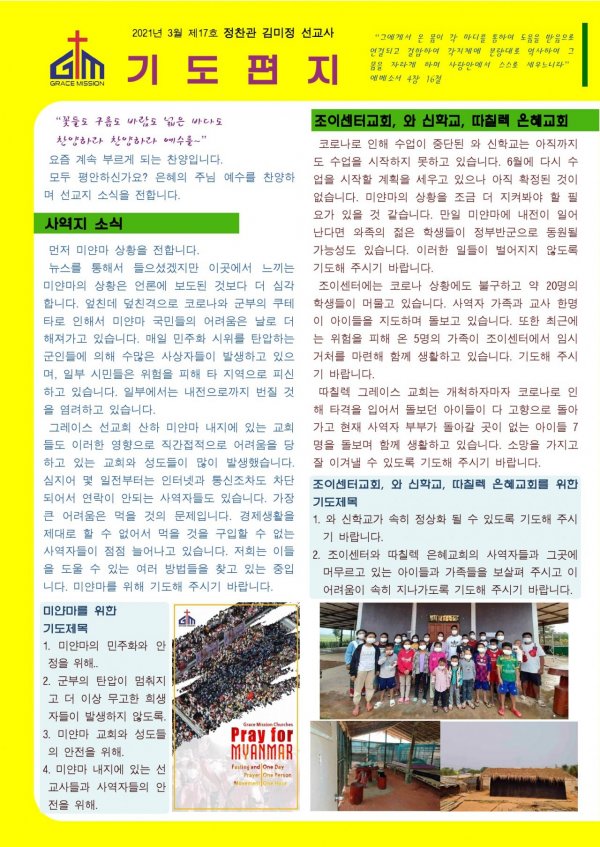 태국(미얀마) 정찬관, 김미정 선교사 선교편지(3월)