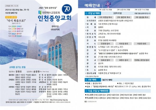 날짜: 2021.03.05 글쓴이 : 관리자 | 교회/교우 소식