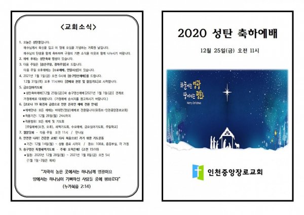 2020 성탄절 예배 순서지