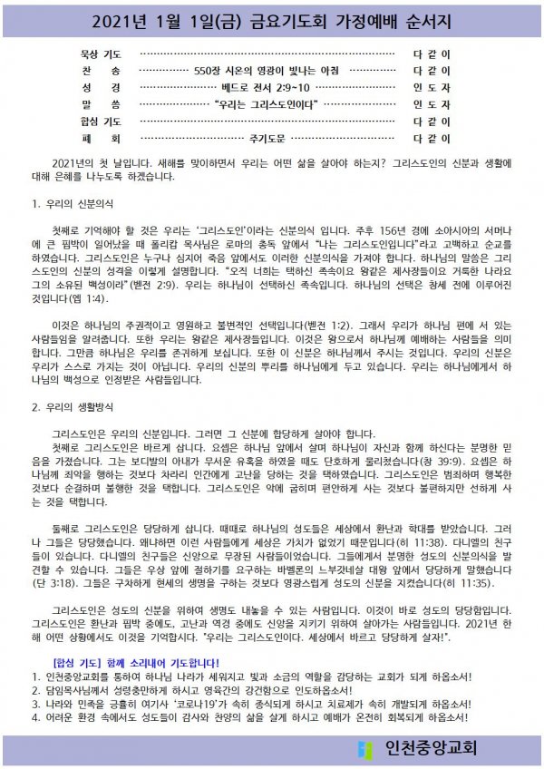 2021년 1월 1일 금요기도회 순서지
