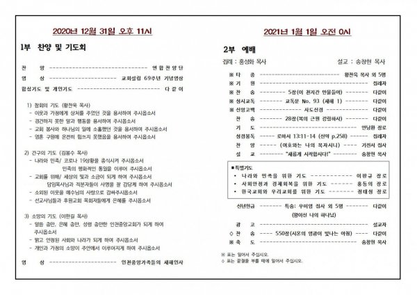 2020년 송구영신예배 순서지
