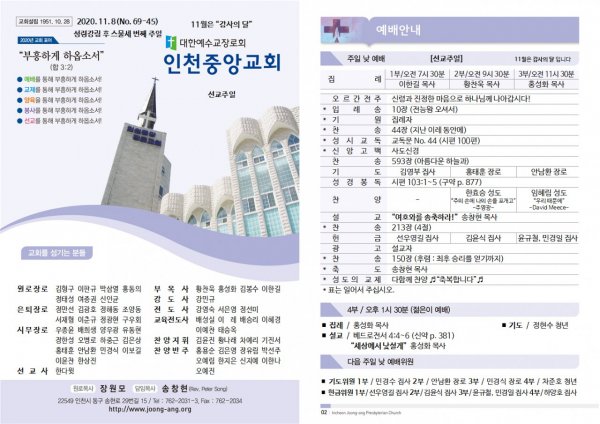 날짜: 2020.11.06 글쓴이 : 관리자 | 교회/교우 소식