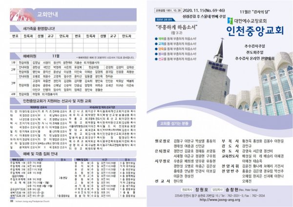 날짜: 2020.11.15 글쓴이 : 관리자 | 교회/교우 소식