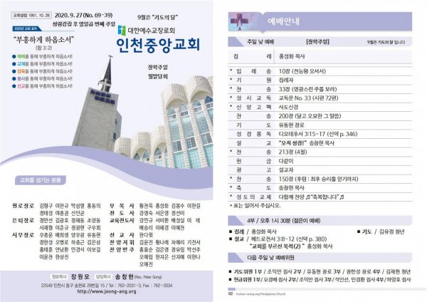 날짜: 2020.09.19 글쓴이 : 관리자 | 교회/교우 소식