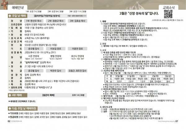 2026년 3월 15일(주) 교회/교우 소식